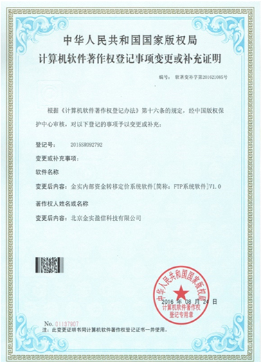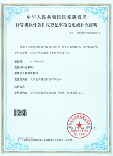 - 資金系統軟件著作權登記證書