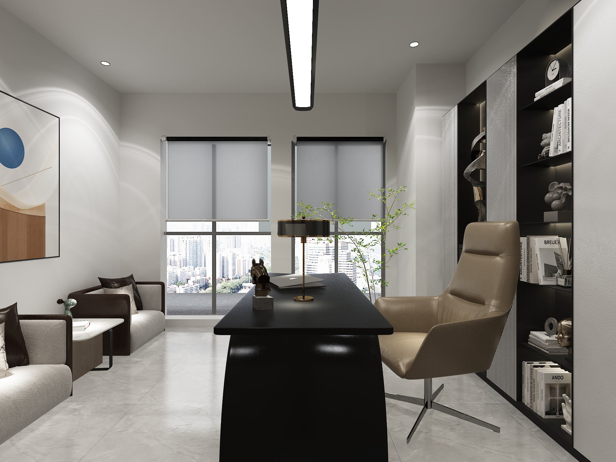 將空間分割成多個小單間辦公室,單間辦公室往往自然采光不足,需輔以人工照明。優(yōu)點(diǎn)是室內(nèi)環(huán)境安靜、干擾小,具備一定的的私密性,員工在這樣的環(huán)境中辦公更容易集中注意力,單間辦公室適用于規(guī)模不大的單位,或者對私密性要求較高的部門,例如財務(wù)部門。